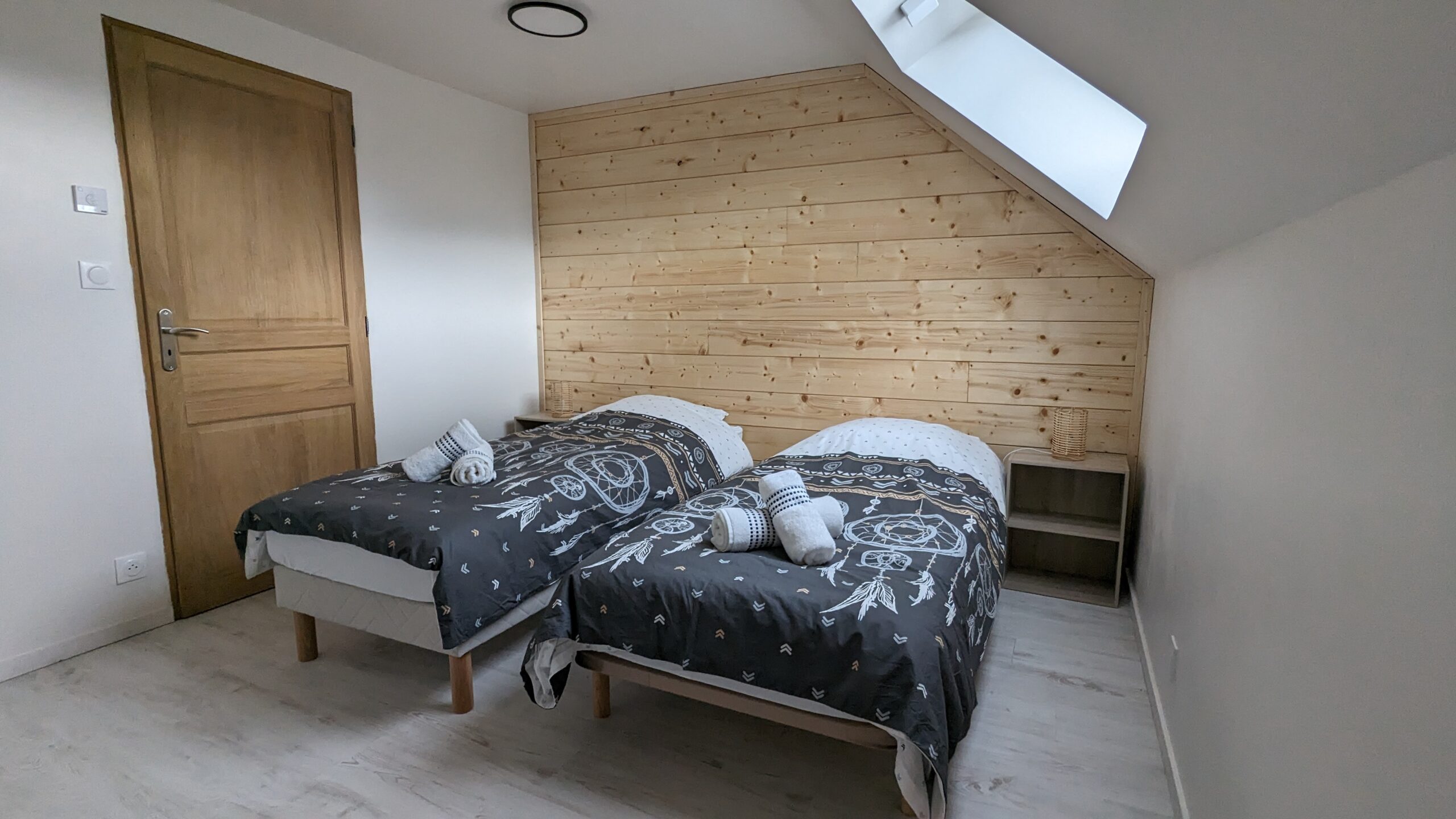 - Une 2ème chambre avec 3 couchages, 2 lits de 80 x 200 pouvant faire 1 lit de 160×200 et 1 lit de 90 x 190