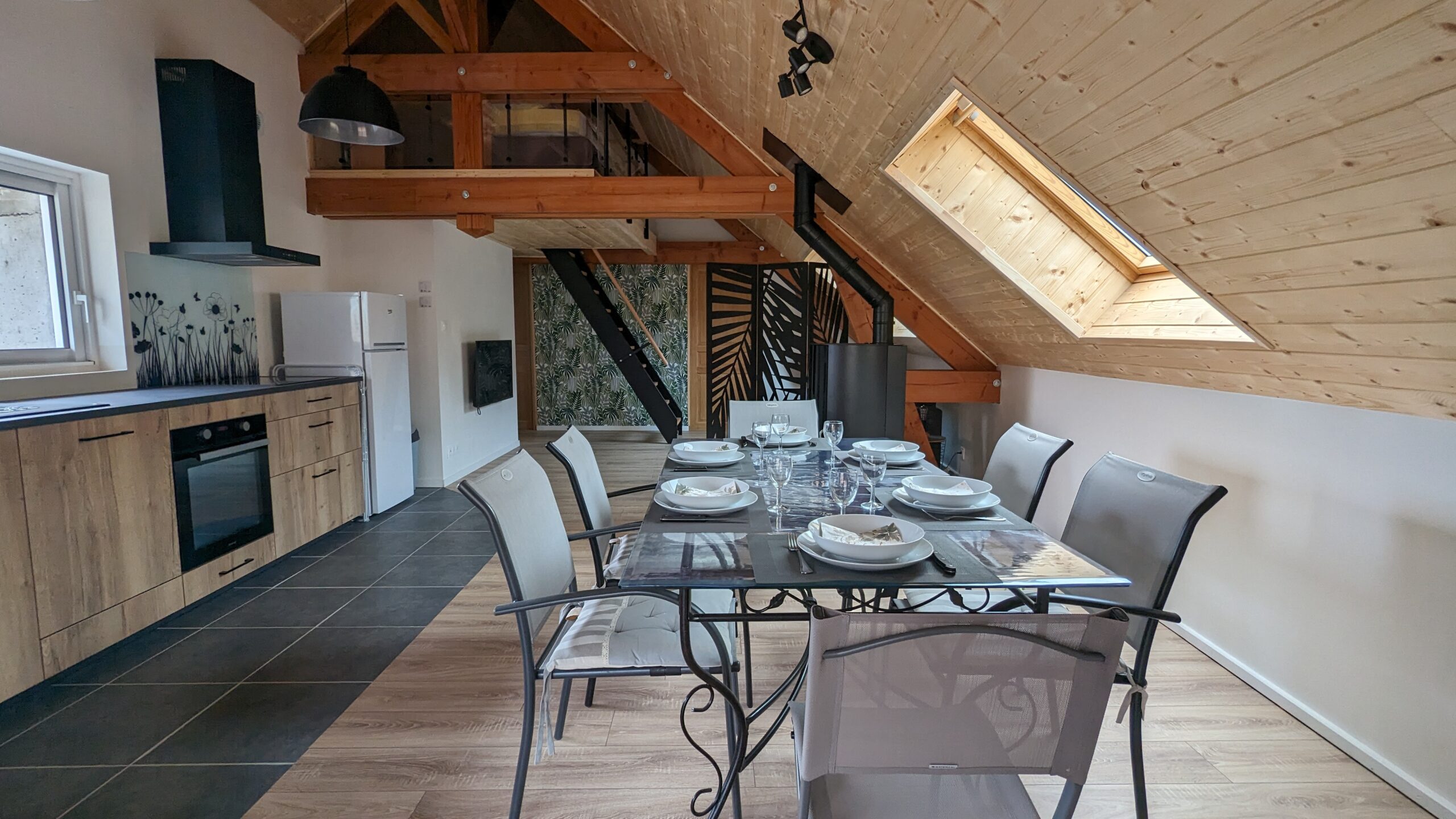 Gîte montagnard moderne : ancienne grange de ferme alpine transformée en un appartement moderne de 80 m², notre gîte offre un mélange unique de caractère traditionnel et de confort contemporain.