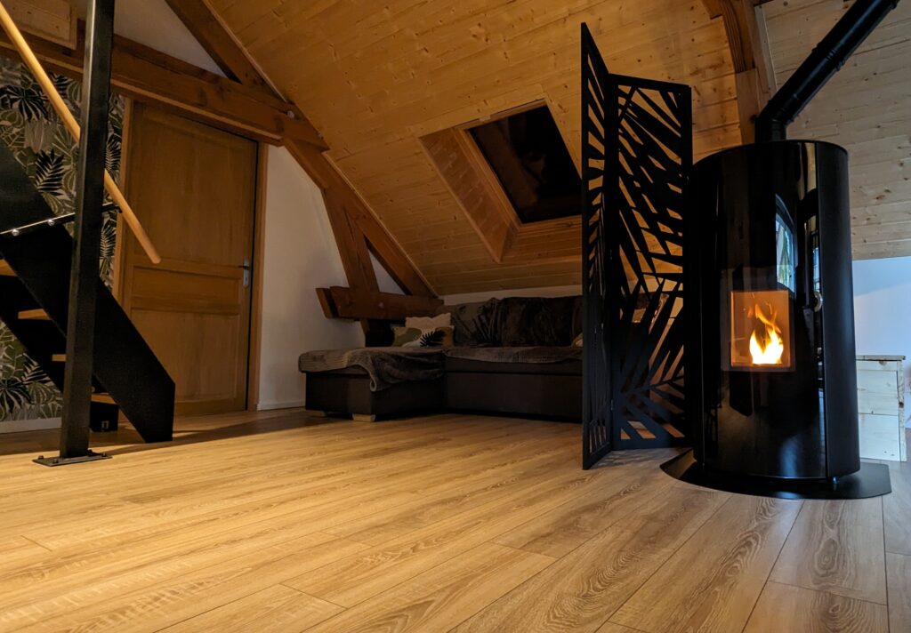 - Chauffage : poêle granulés (voir utilisation/ page explicative), et chauffage individuels dans les chambres